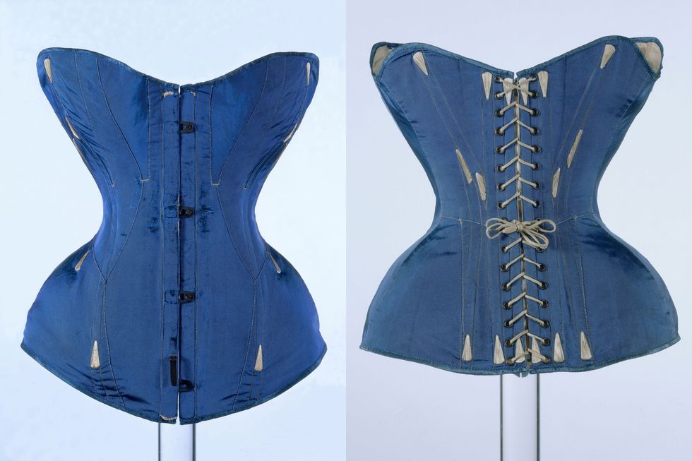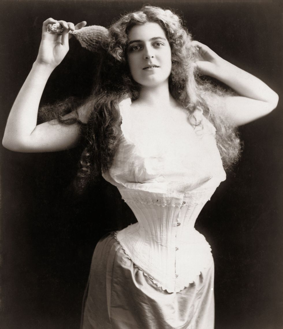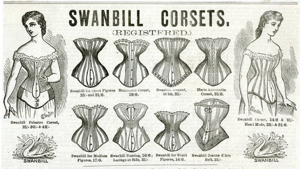 Em 1500, em Creta na Grécia, foi desenvolvido o primeiro espartilho, usado com vestidos de cerimônia – mas somente em meados do século XIX que as silhuetas mudaram e se tornaram ampulhetas, com o estreitamento extremo da cintura, achatando o estômago, levantando os seios e uma postura ereta possibilitado por espartilhos de aço ou de ossos de baleia. O porte de uma mulher era algo muito importante, principalmente entre a classe mais alta. O espartilho continuou sua popularidade em todas as classes de mulheres da sociedade ocidental, desde as versões simples feitas em casa até as mais elaboradas roupas de grife em jacquard de seda com babados e laços.