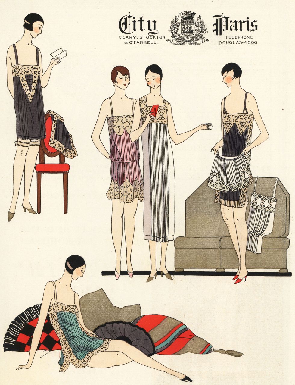 Outro marco dessa época, foram as camisolas costuradas com calcinhas, os chamados camiknickers. Essa peça se tornou muito popular entre as mulheres, já que permitia o seu uso sob vestidos mais curtos e continuaram a fazer parte dos vestuários das mulheres até a Segunda Guerra Mundial, quando começaram a usar calças e atuar em funções, que até então eram consideradas apenas masculinas.
