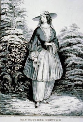 No final do século, um novo tipo de calça folgada também entrou em cena: as bloomers! Um marco na reforma do vestuário feminino onde subverteu gêneros e acabou com a regra “calças para homens e saias para mulheres”, originalmente, essa peça foi inventada pelas americanas Elizabeth Smith Miller e Fabrizia Flynn, mas recebeu esse nome em homenagem à sua defensora ferrenha, a ativista dos direitos das mulheres e editora de jornal Amelia Bloomer no início de 1850. As bloomers eram calças compridas e largas, que se estreitavam na altura dos joelhos e eram usadas por baixo das saias. Outro marco histórico para a categoria de roupas esportivas que até então não havia um tipo de roupa específica para a prática. Elas eram especialmente úteis num momento onde as bicicletas e práticas de esportes estavam se tornando populares, exigindo das mulheres um vestuário confortável e principalmente simplificado. Surgiram, portanto, para oferecer uma alternativa mais prática às pesadas anáguas e aros de épocas anteriores, apesar de serem destinadas também a decência vitoriana, uma época de regras rígidas para as mulheres. No entanto, essas vestimentas "masculinas" ainda eram consideradas tabu para as mulheres nessa época, e passariam muitos anos até que as calças fossem abertas a todos os gêneros em nossa sociedade. As mulheres que usavam essa peça, apesar de ridicularizadas e insultadas pela imprensa, estavam envolvidas na “reforma do vestuário”, na abolição da escravatura e no movimento pelos direitos das mulheres, ou seja, eram as primeiras feministas. Por mais que tenha surgido nos Estados Unidos, logo se tornou conhecida mundialmente onde por exemplo, na Inglaterra, eram chamadas de “knickerbockers”.