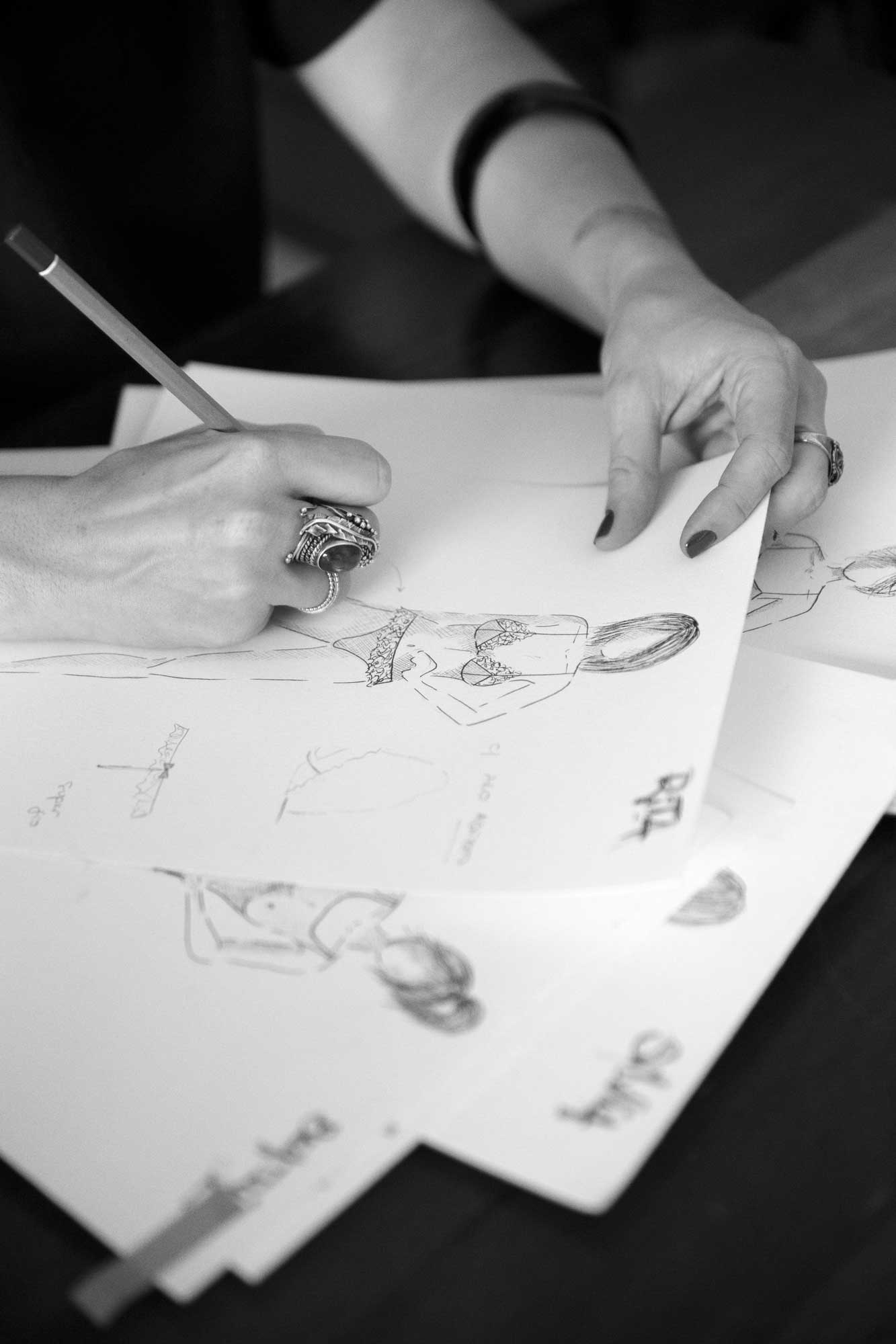 “As ideias começam de forma clássica, um sonho vira um desenho no papel, um "sketch", uma silhueta criada à mão. Através da moulage no busto, a magia vai acontecendo”